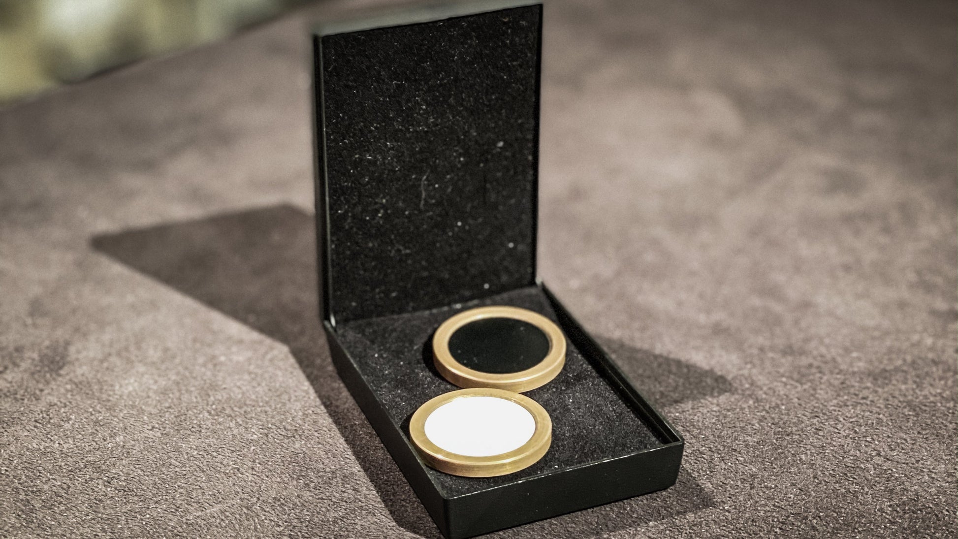 Two brass poker chips, one white and one black are shown. Placing one into each hand, you explain that they will change places! Upon opening your hands, the chips have apparently reversed positions.