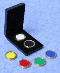 You immediately offer to repeat the trick. Once again, the chips apparently change places. By now some spectators will be getting rather suspicious and call out asking to see the other side of the two chips. You agree, turning both chips over. To everyone's surprise the back of one chip is red and the other green. Then, turning the chips over to the original side, you show that they too have changed! One is blue and the other is yellow.