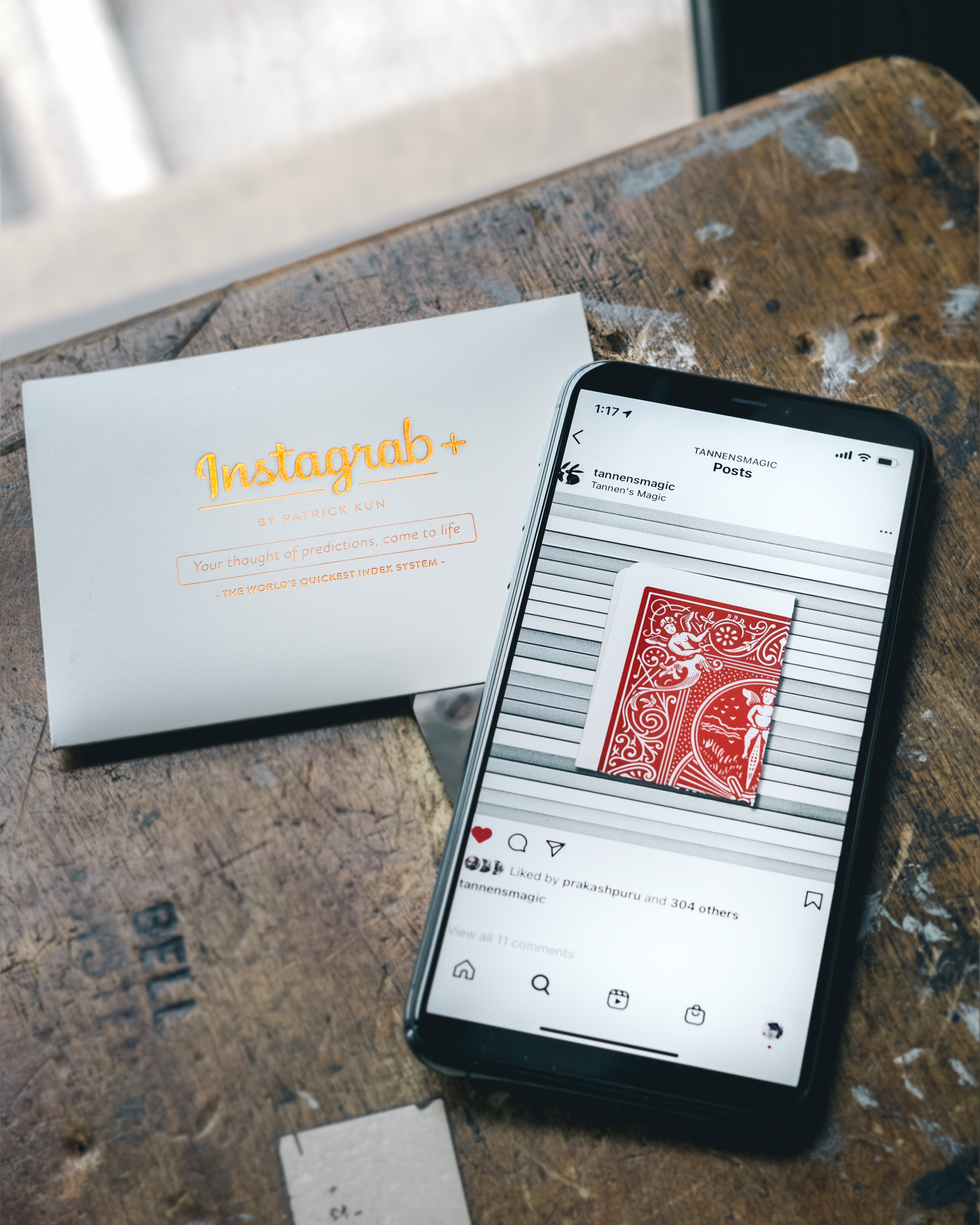 A Card From Phone like no other. For the first time ever, you'll be able to pull a thought-of card from Instagram without ANY special apps, leaving the picture altered forever. That's just the start of what is possible with the InstaGrab utility device. You'll learn multiple variations and principles, but in the end, your imagination is the limit! It works with both IOS and Android. It will also make your old mystery card tricks fun to perform again. Oh, did we mention all of this is done on the spectator's borrowed phone?