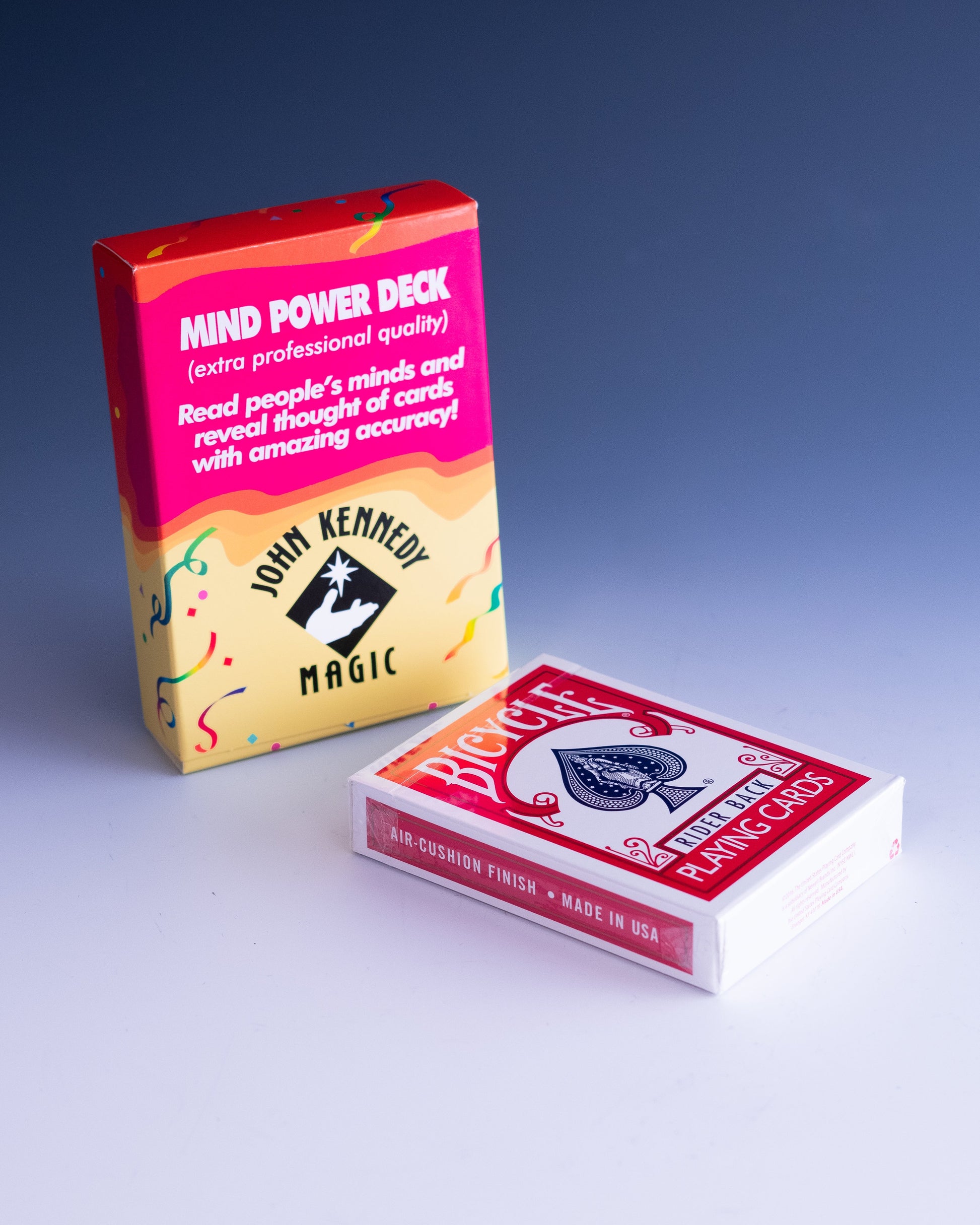You can repeat it immediately and it will become even more baffling. In fact, even if several people simultaneously look at different cards, you can read each person's mind and name their card correctly every time! John Kennedy's Mind Power Deck is so eerie, so impossible, your audience will be convinced that you possess a sixth sense.