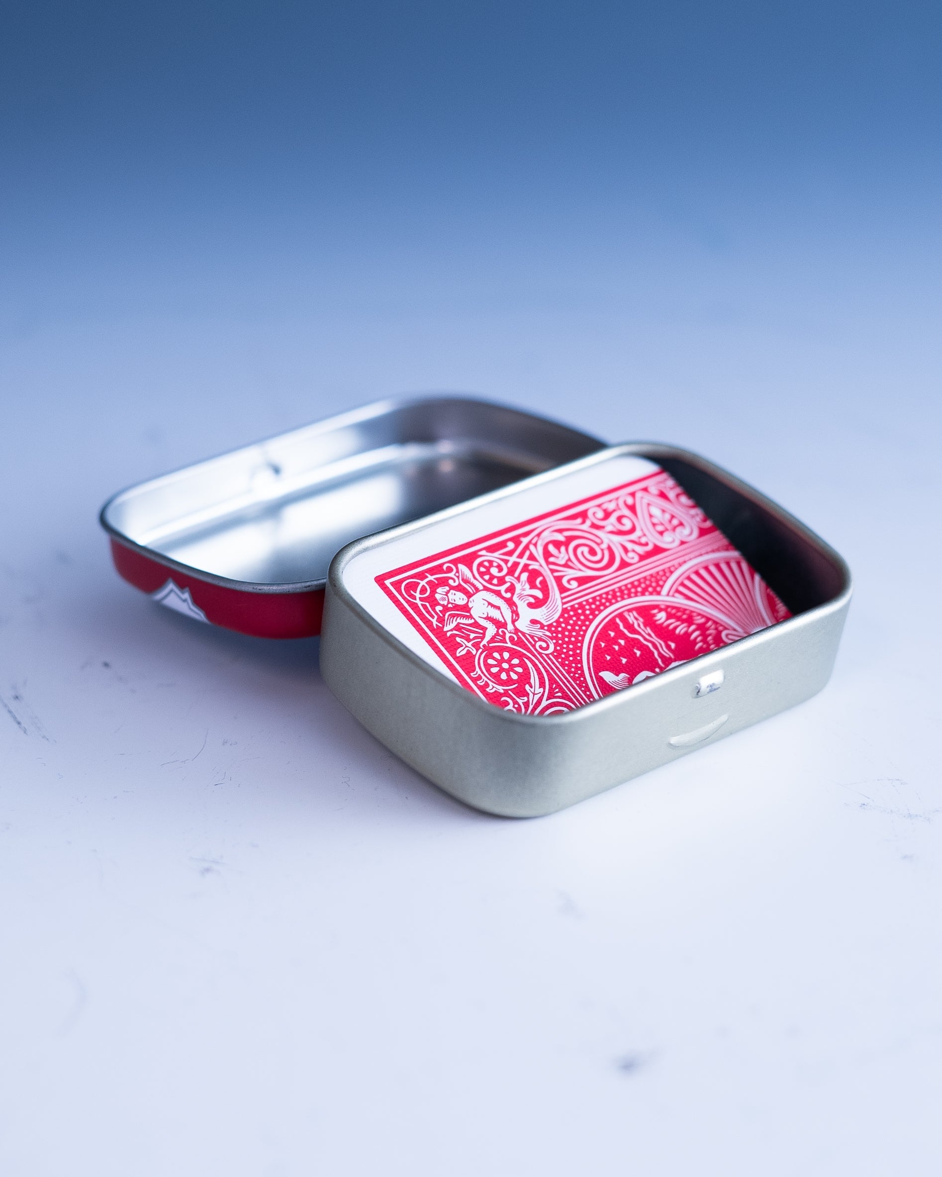 Daniel Garcia, one of magic's most sought-after creators, has done it again with his first magic release in years! One of the cleanest and most natural switching devices ever created, MINT BOX is unlike anything you've ever seen before. Self-contained in a small Altoids tin, the gimmick allows you to OPENLY and INVISIBLY switch a card displayed inside the mint box for a spectator's SIGNED selection... completely surrounded! The mechanics are so good, you'll fool yourself! An instant every day carry!
